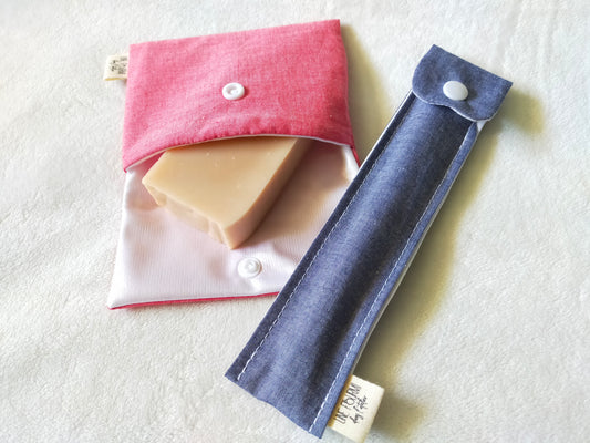 Set de voyage - Pochette à savon, Bourse shampoing solide & Etui Brosse à dent