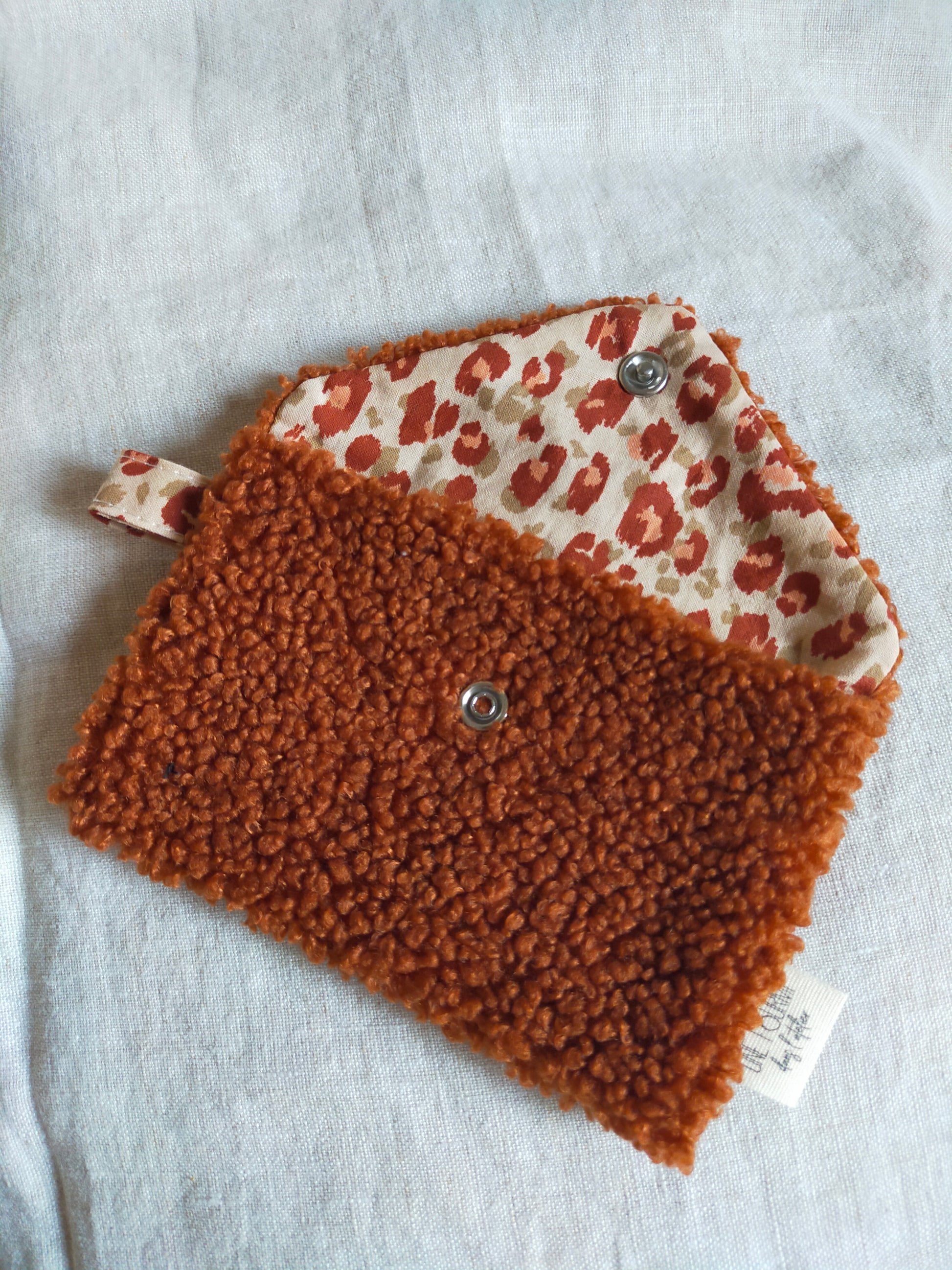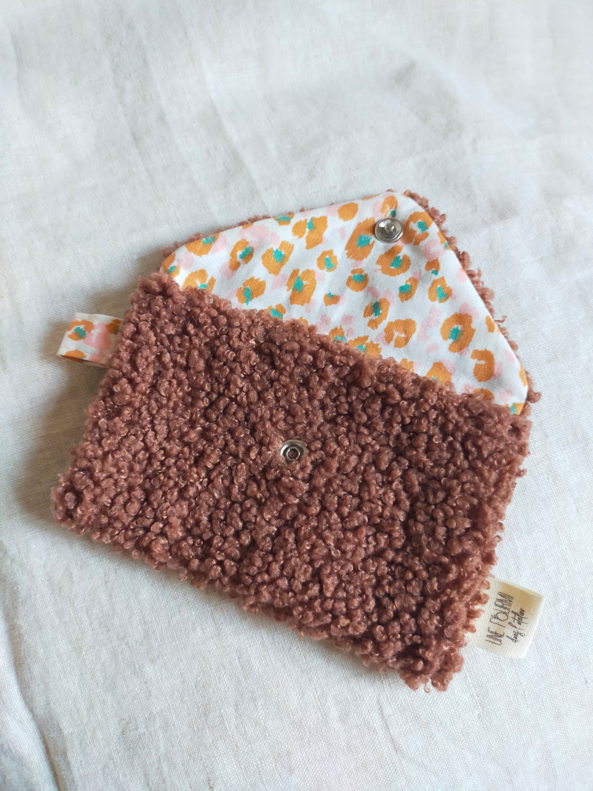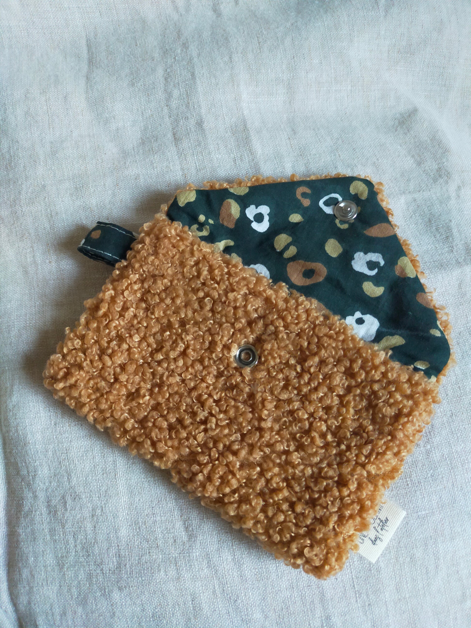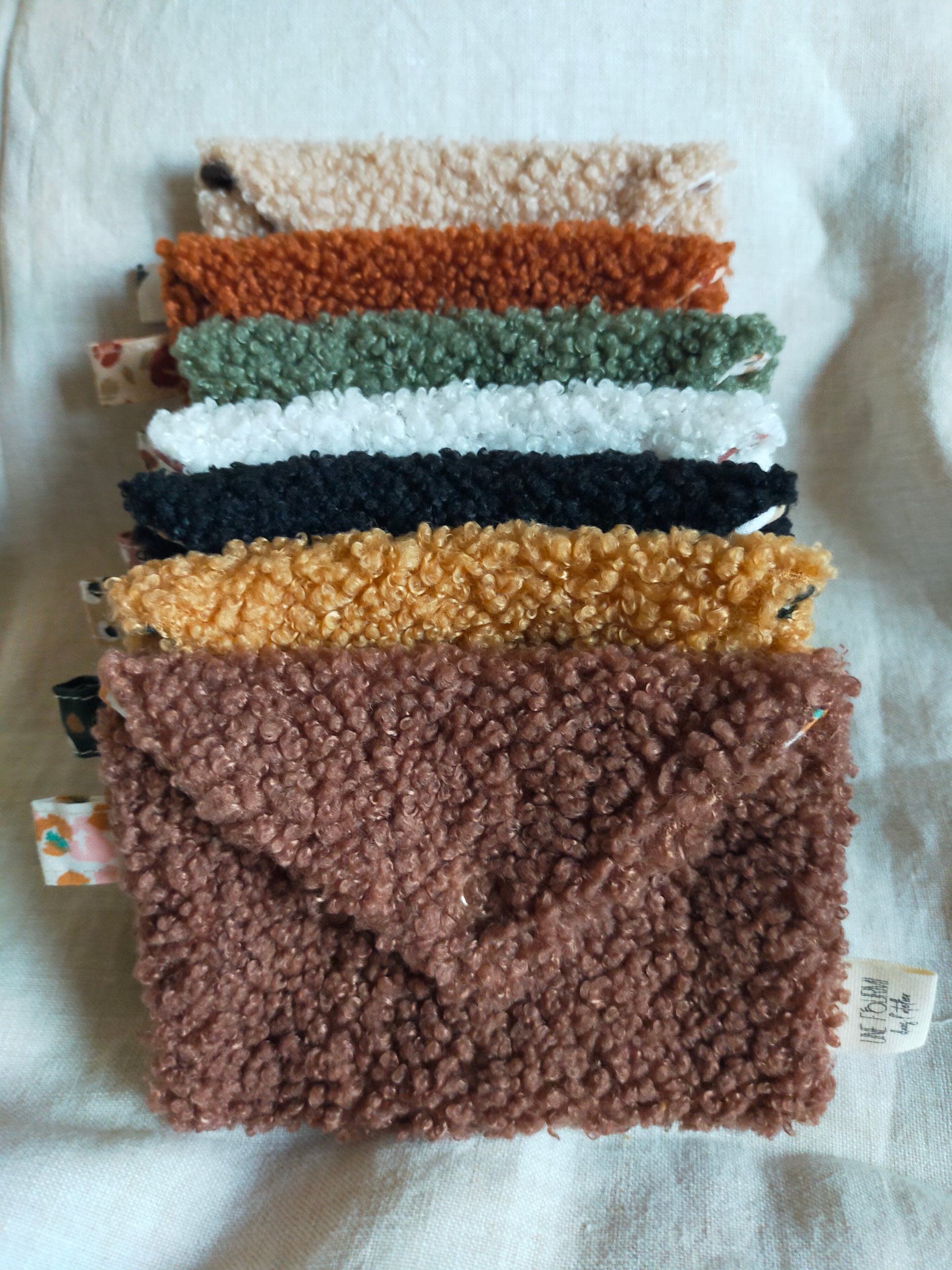 Le tissu teddy apporte une sensation cocooning qui transforme un simple porte-cartes en accessoire plaisir.