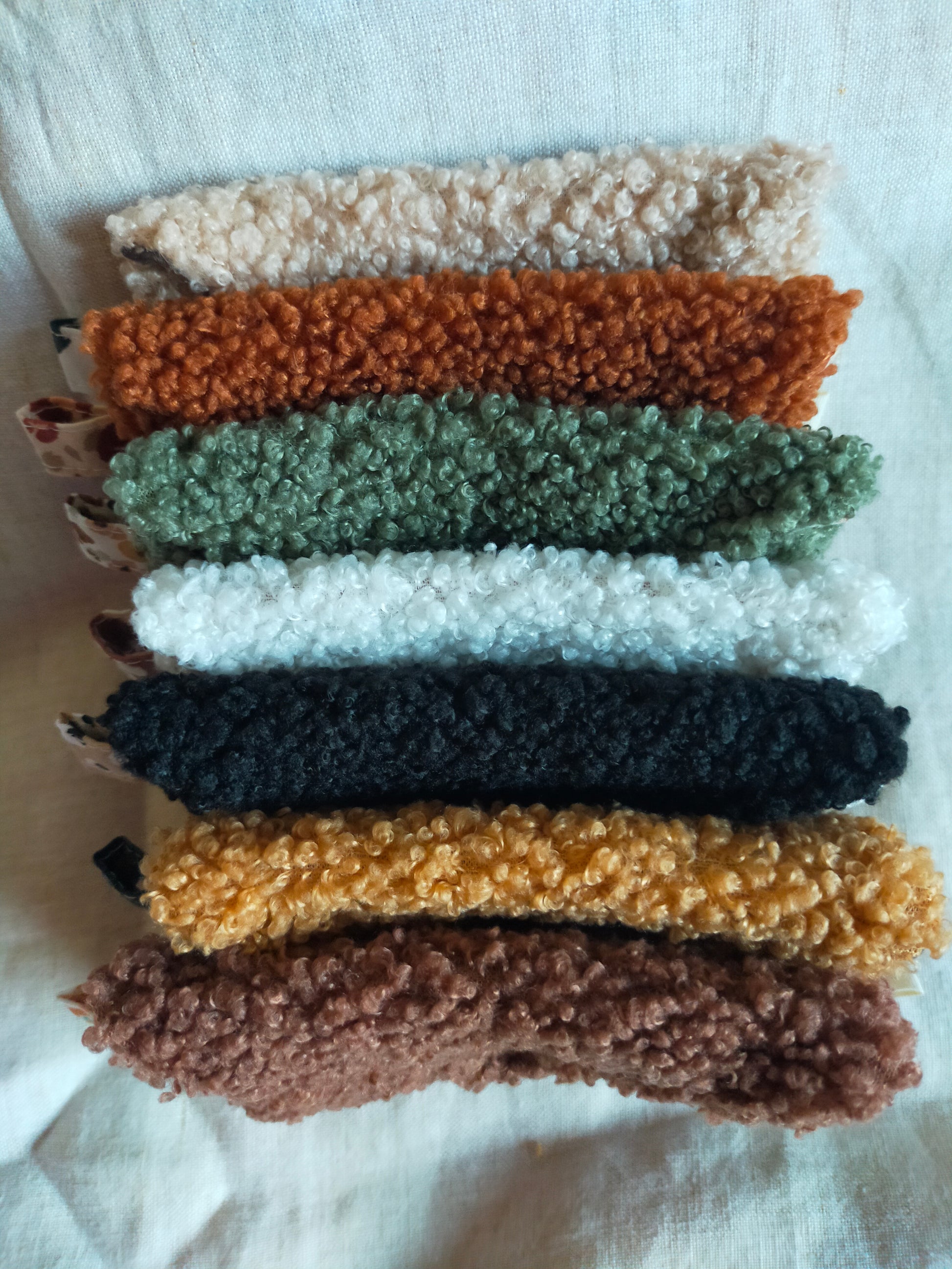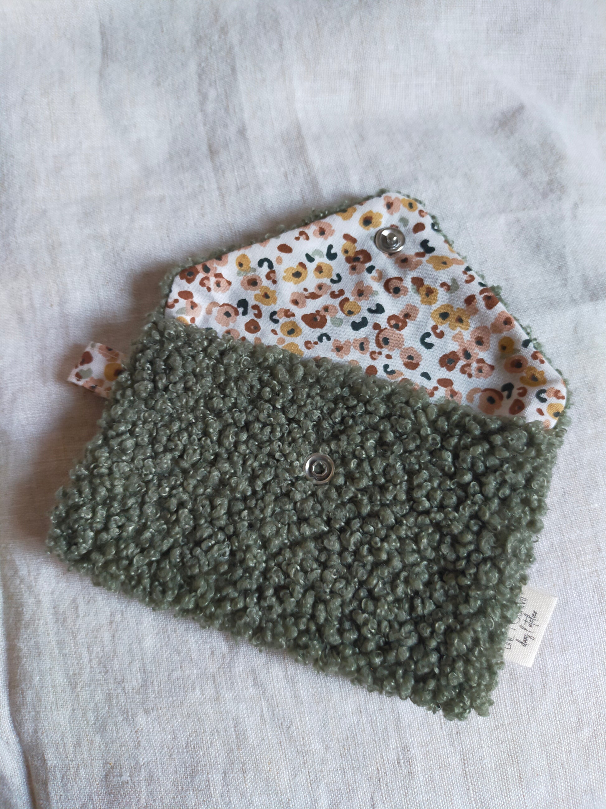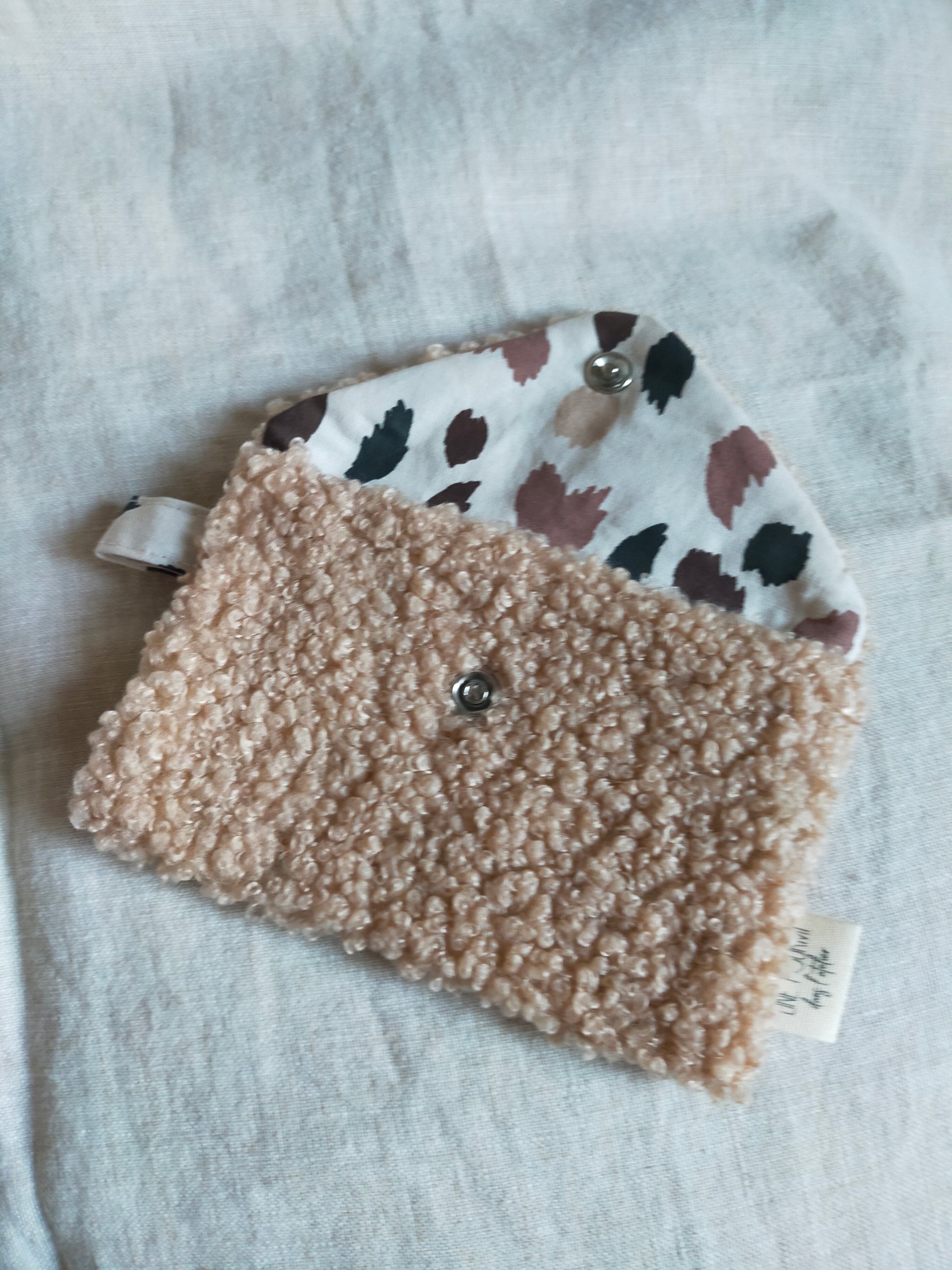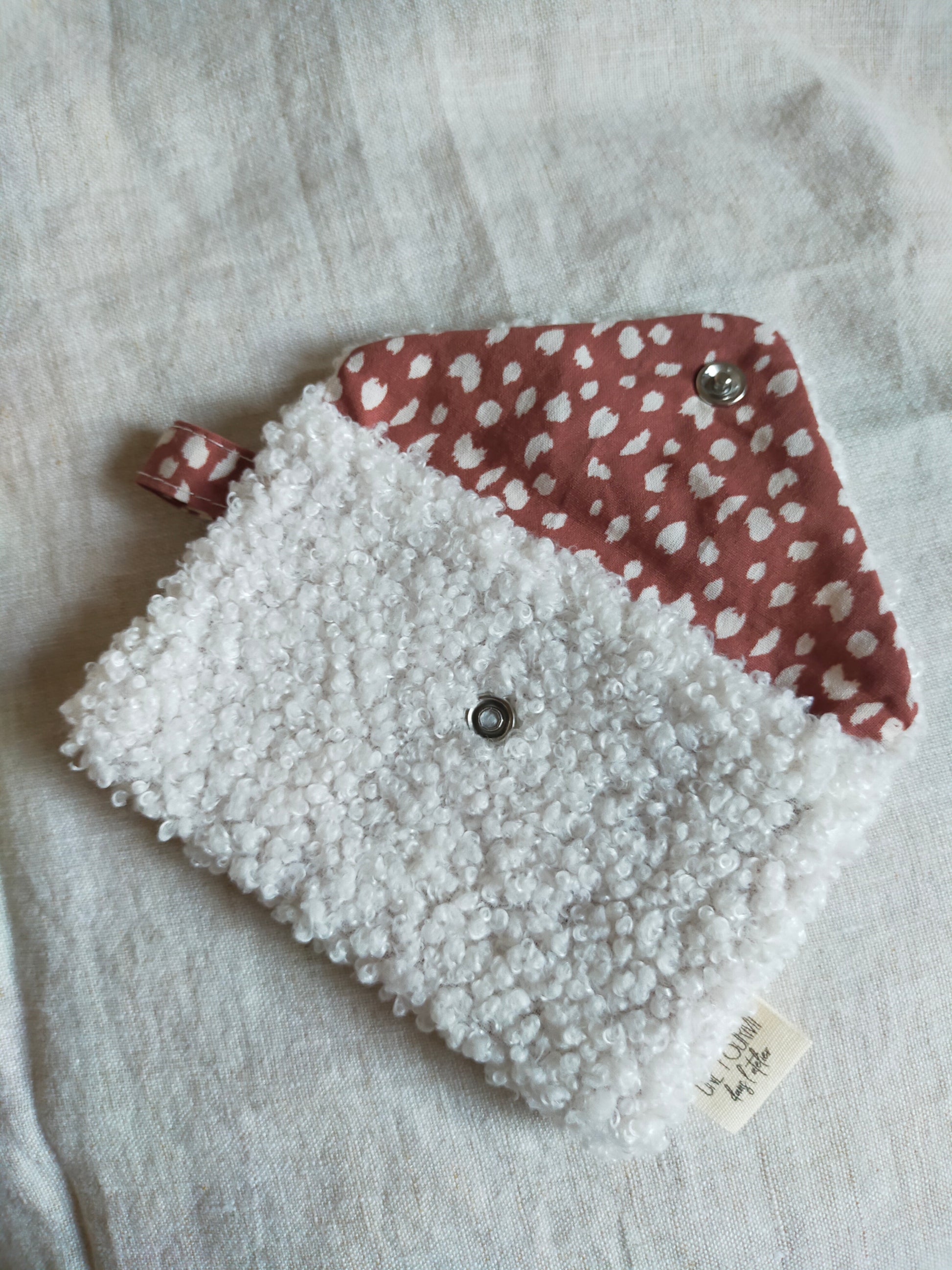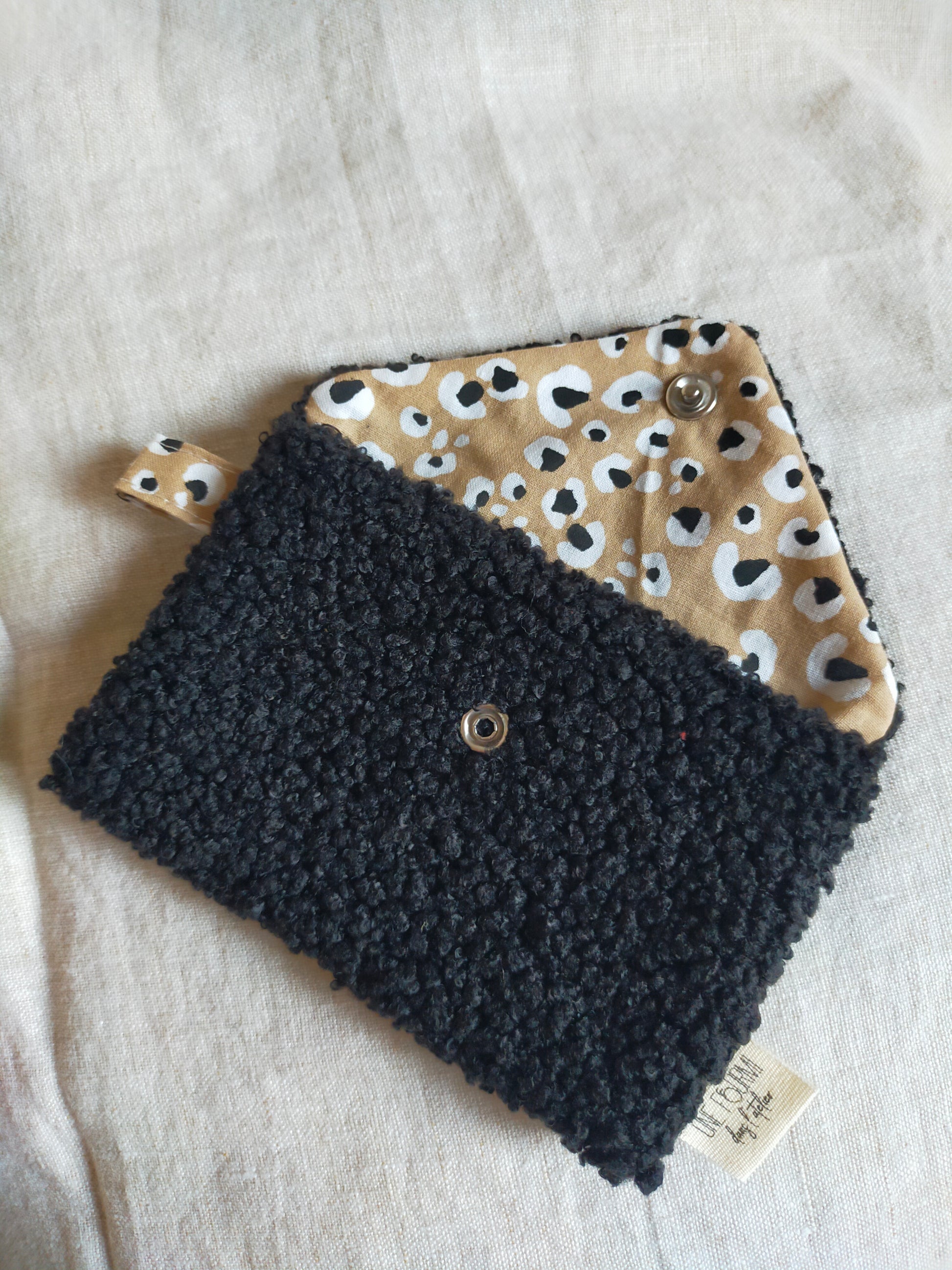 Le tissu teddy apporte une sensation cocooning qui transforme un simple porte-cartes en accessoire plaisir.